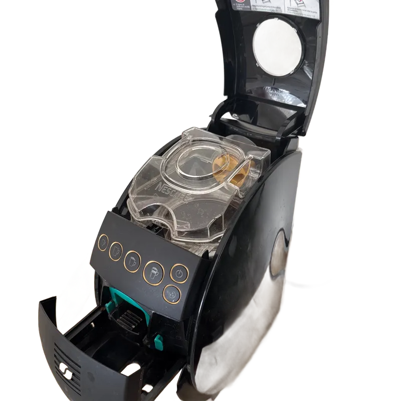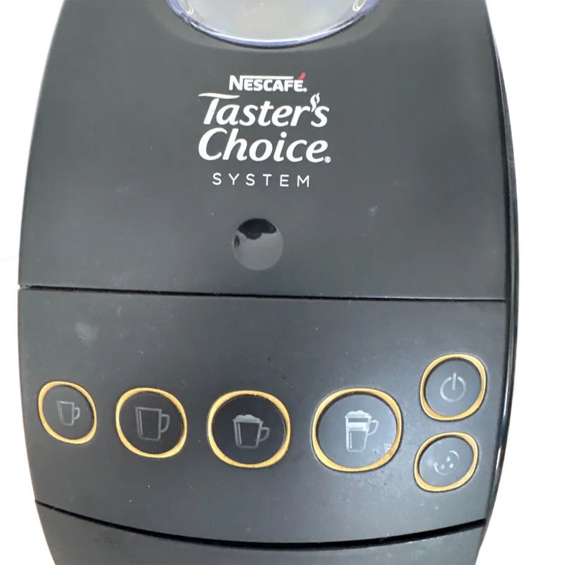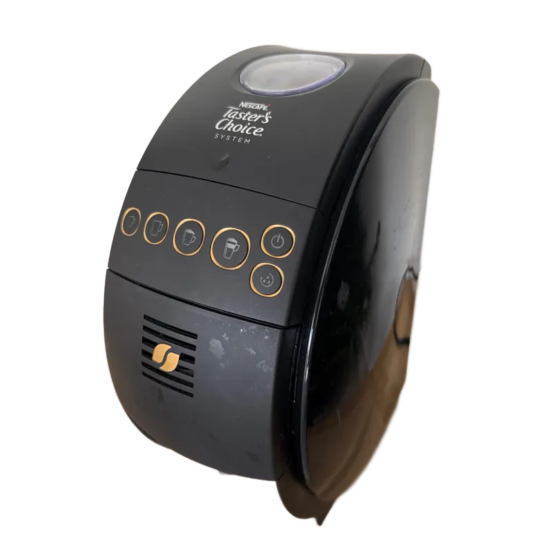 Cafetera Nescafé Taster’s Choice 9634 en excelente funcionamiento. Está diseñada para usarse con café soluble Nescafé (no cápsulas), y prepara bebidas calientes de forma rápida y uniforme. Incluye conectividad Bluetooth para usar la app oficial, personalizar recetas y activar funciones programadas. Depósito de agua ~0.8 L y operación completamente automática. Nota rápida: le falta la base/cup-stand inferior (ver fotos), pero no afecta su uso; simplemente coloca la taza directamente bajo el dispensador. Ideal para quien quiere una máquina práctica, económica y compatible con la app. Puedo enviar video de la cafetera funcionando si lo deseas.